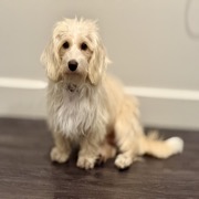 I'm a 1-year-old doxiepoo with a heart bigger than my fluffy ears. Part dachshund, part poodle, all love.